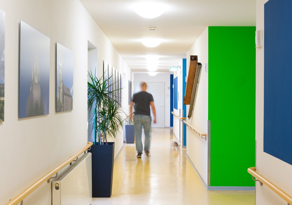 In unserem Haus sind acht Wohngruppen mit separatem Gemeinschaftsraum und Kochgelegenheit untergebracht. Die Aufzüge sind selbstverständlich rollstuhlgerecht. Es gibt einen Friseurraum, einen kleinen Kiosk im Foyer, eine Cafeteria und einen Andachtsraum. Wir bieten 95 vollstationäre Pflegeplätze in 95 Einzelzimmern.