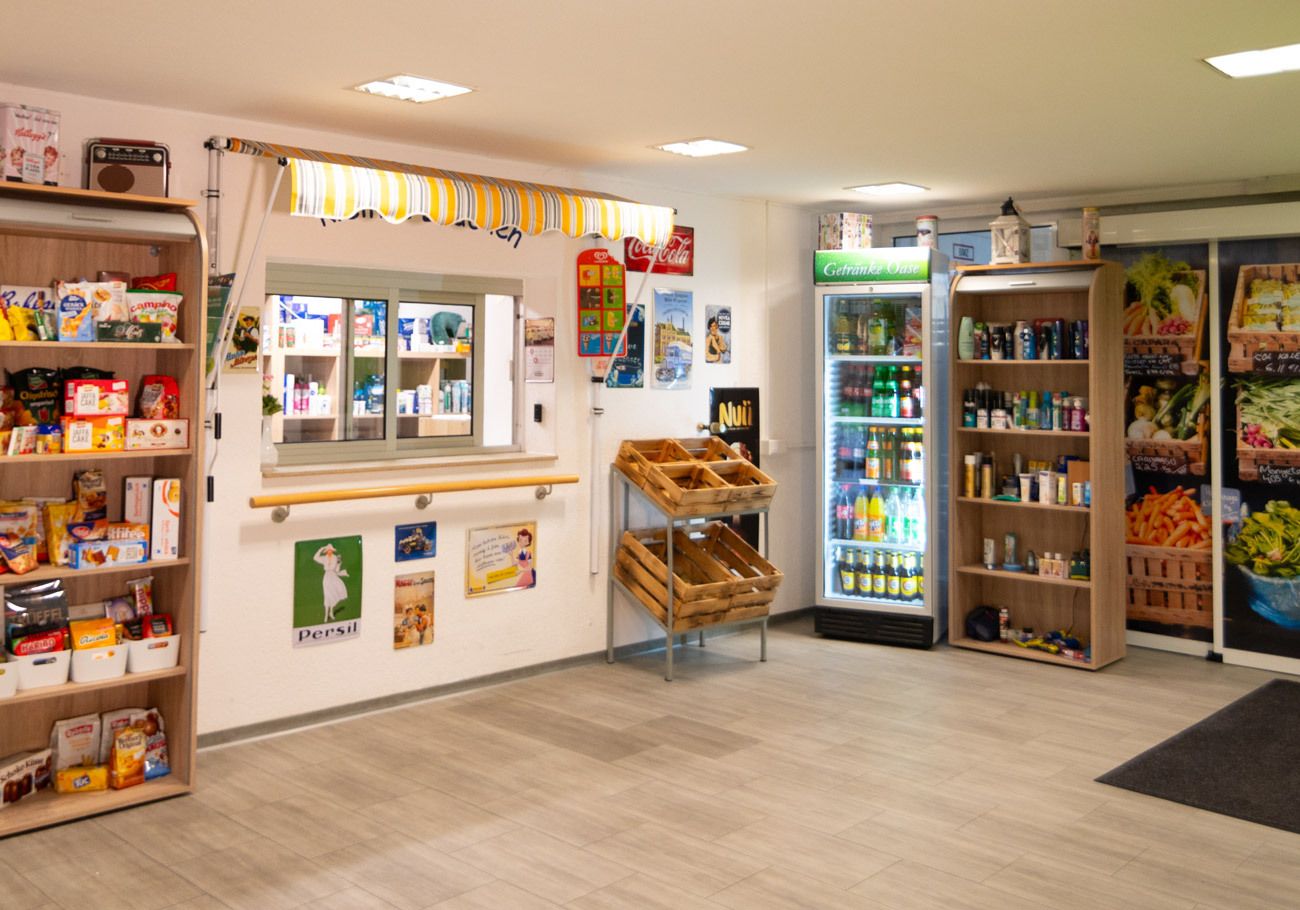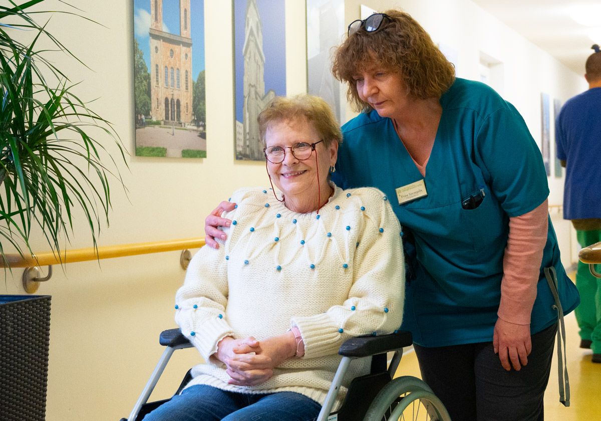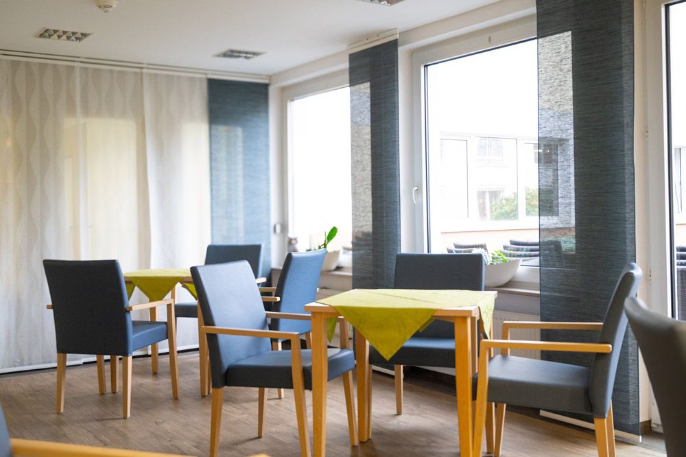 Ein gewisses Kontingent an Kurzeitpflegeplätzen ist „eingestreut“. Die Zimmer verfügen jeweils über ein eigenes Bad, einen Fernseh- und Telefonanschluss. Zur zeitgemäßen Pflegemittelausstattung gehören z. B. Weich­lagerungs­matratzen zur Dekubitusprophylaxe, ein Patientenlift mit Waage, höhenverstellbare Pflegebetten und eine Schwesternrufanlage.